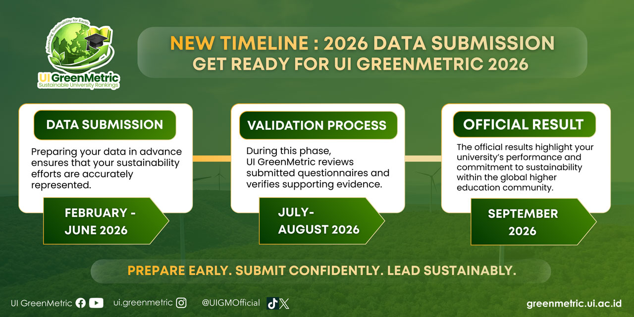 UI GreenMetric adalah program unggulan Universitas Indonesia yang sejak 2010 menilai komitmen keberlanjutan institusi melalui berbagai pemeringkatan global. Inisiatif terbaru, Sustainable Corporate Rankings, memperluas pendekatan tersebut ke sektor korporasi guna mendorong praktik bisnis berkelanjutan berbasis data.