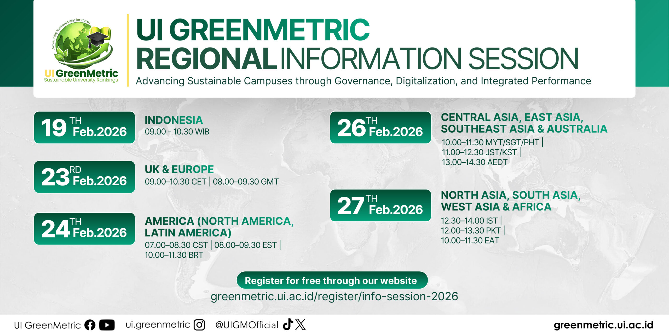 Furthermore, UI GreenMetric supports the Ministry’s efforts to advance sustainability across higher education institutions by expanding participation in its university rankings framework. Through benchmarking, evaluation, and guidance, participating universities are encouraged to strengthen sustainable campus practices and improve their environmental performance. Broader participation from Indonesian institutions, including state universities with legal entity status (PTNBH), public universities (PTN), and private universities (PTS), will contribute to more sustainable operations that benefit surrounding communities and industries at the national, regional, and local levels. As an initiative developed and initiated by Universitas Indonesia, UI GreenMetric represents a homegrown Indonesian framework that has earned global recognition, with 1,745 institutions across more than 105 countries currently participating.