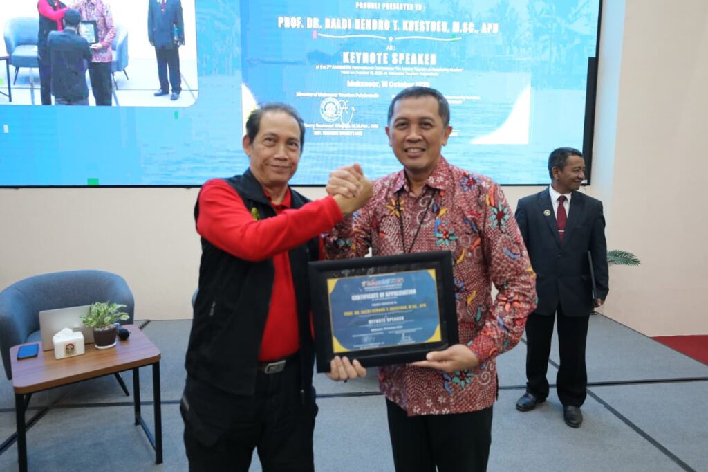 18 October 2025, Makassar — The Politeknik Pariwisata Makassar successfully hosted the 2nd International Conference on Marine Tourism and Hospitality Studies (IConMTHS 2025) at the Soesilo Soedarman Auditorium, gathering prominent experts, academics, and practitioners to discuss the future of sustainable tourism and hospitality.
